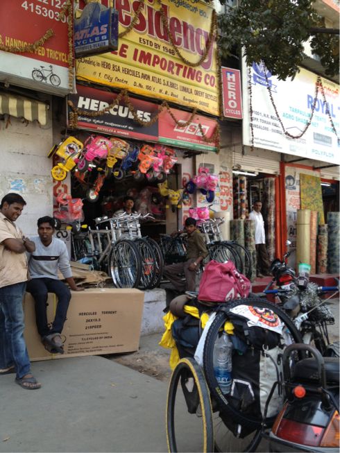今日はまず、バンガロールでタイヤとチューブを探した。