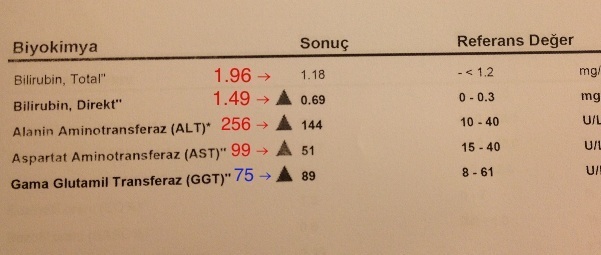 ビリルビン値はだけは正常範囲内に戻ったものの、