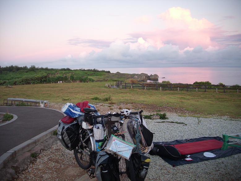 先輩と別れた後、俺はおととい泊まった、あの快適な残波岬のバーベキューサイトへ♪