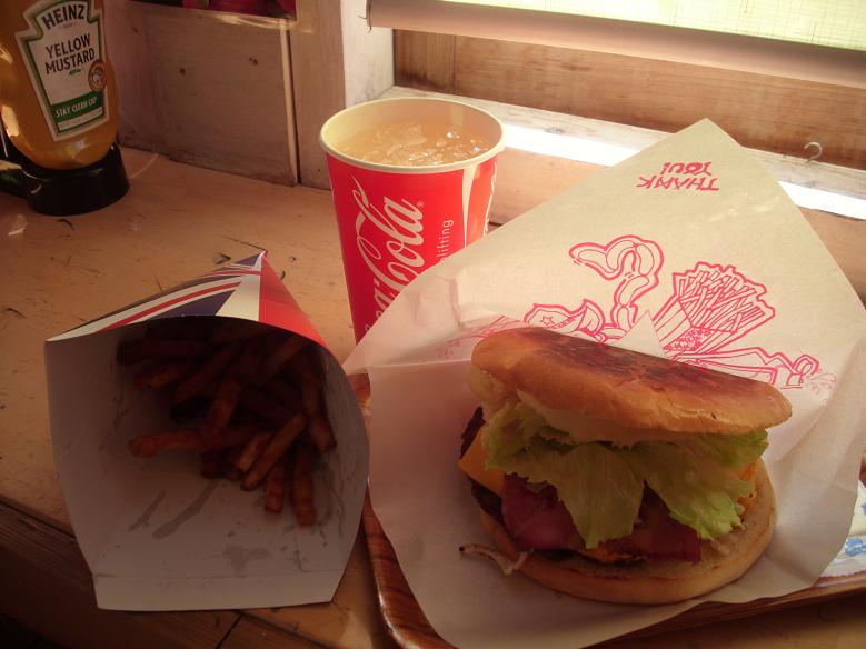 分厚いベーコンやらデッカくてジューシーな肉やら、野菜やらがサンドされていて、