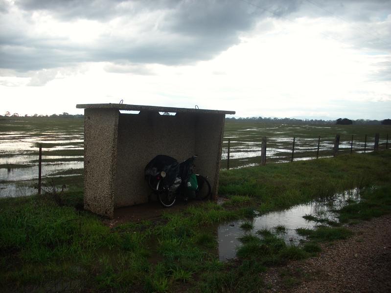 と、20分ほど走ったとき、道端にバス停のような、屋根のある場所を発見!