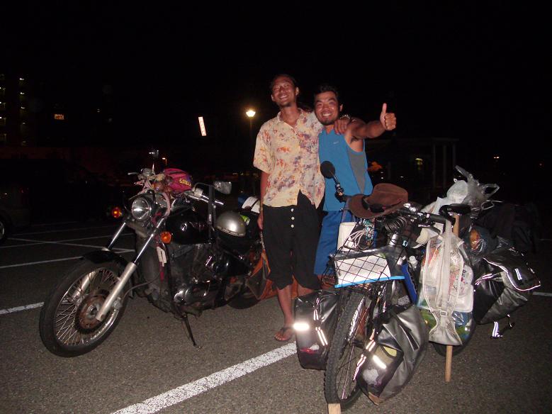 「こんばんは。自転車で日本一周ですか?」