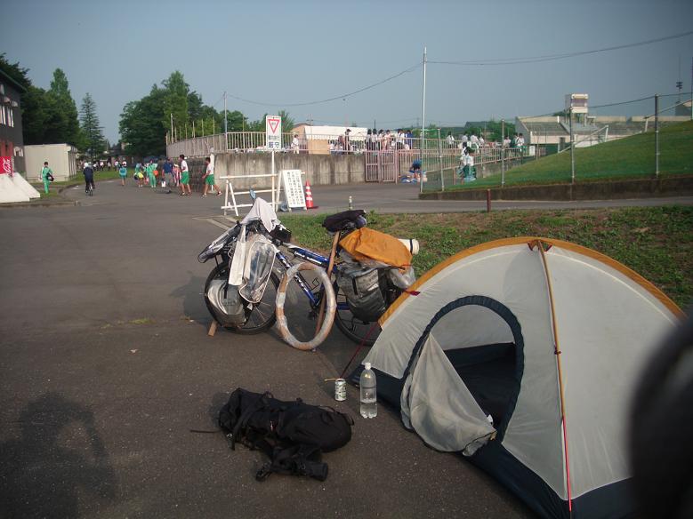 今日は、長岡市の陸上競技場の駐車場での目覚め。