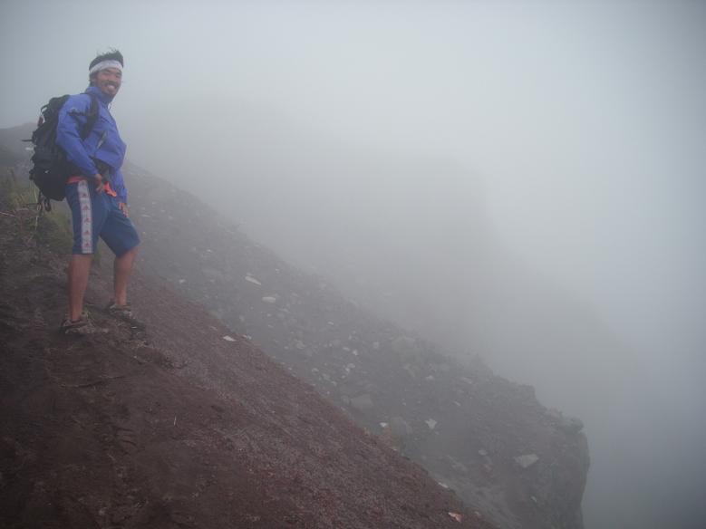 9合目辺りで崩落現場を工事していた人に、