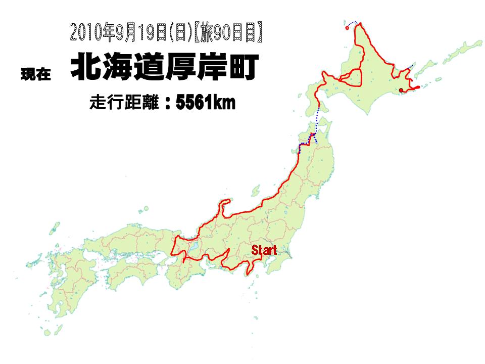 今日は根室を出発して、130km先の釧路を目指して走行中。
