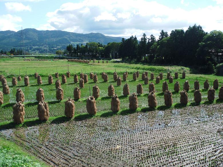 【この辺りは、岩手県北部と藁の干し方が違う】
