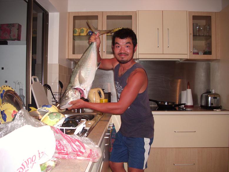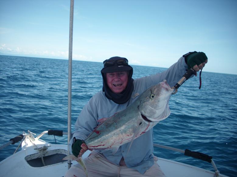 (Ian caught big "Golden trevally" which was 75cm.)