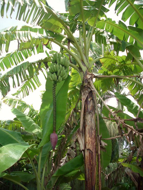 一束のバナナを採るのに、木を一本切り倒してしまうのにびっくり。