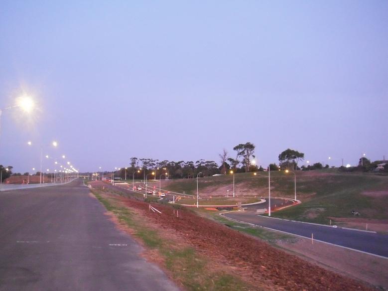 ちょうど暗くなる頃、工事中の高速道路を発見。