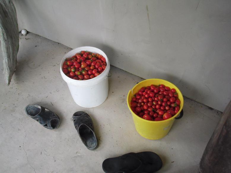 Wendyさんと一緒に畑(家庭菜園)へ出かけ、野菜への水やりや収穫をした。