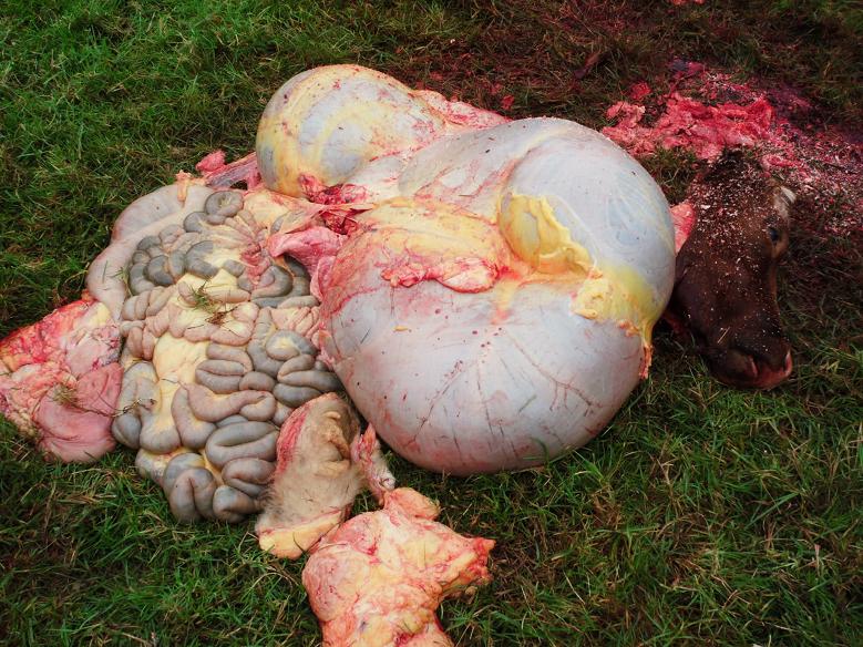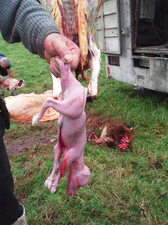 この子牛の胎児は、犬のえさにすることになった。