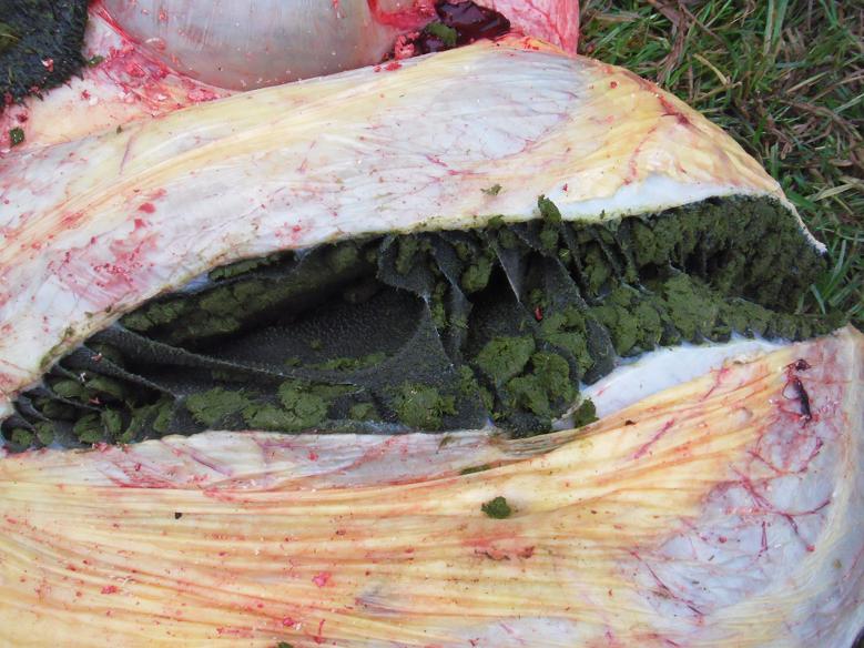 何個目の胃かはわからないけど、草でパンパンになった胃を切ってみると