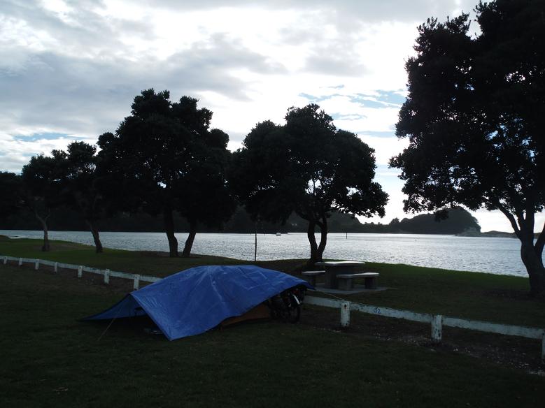 今日は、Whangareiの少し南にあるRest areaでの目覚め。