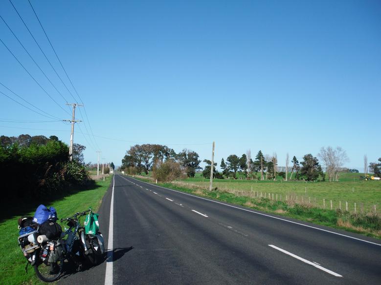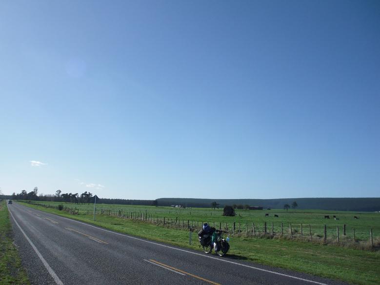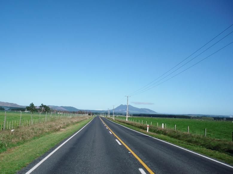 【約50km。牧場の中を、ひたすらまっすぐな道が続く】