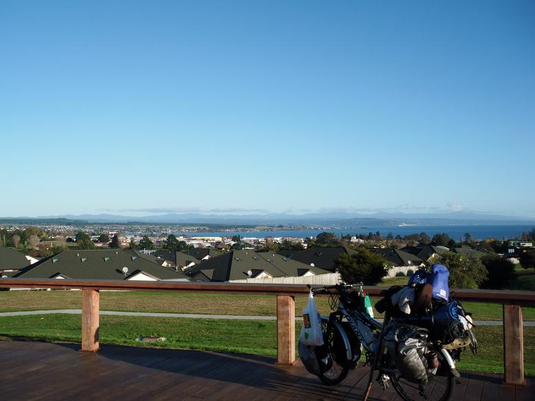 今日は、タウポへ向かう途中、Lake Ngahewaのピクニックエリアでの目覚め。