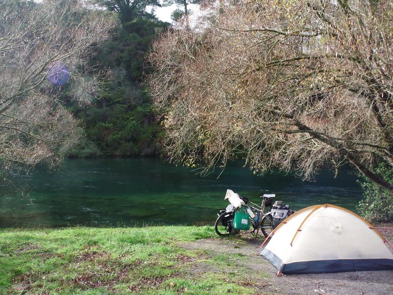 自転車に荷物がないのは、近くのキャンプ場にテントを張ってあるからだという。