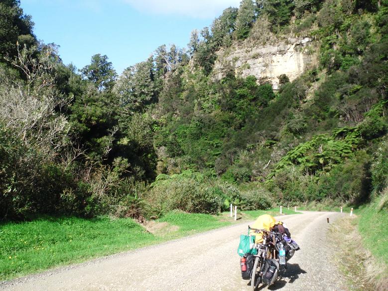 渓谷を下る砂利道では、スポークを折らないように、