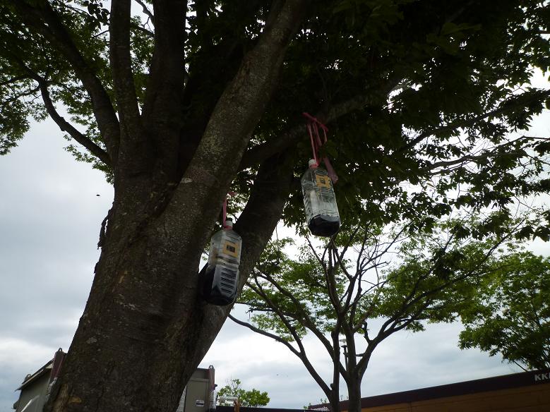 We hung the traps on trees.