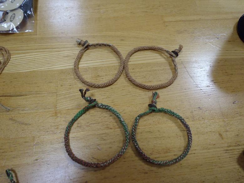持ってきた麻の糸で、アクセサリー作りに没頭。