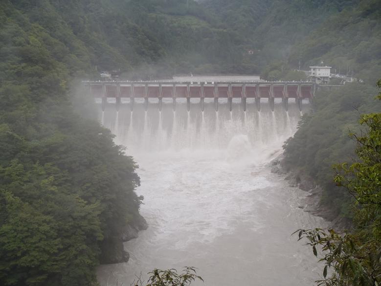【たくさんあったダムも、全開で放水。ものすごい勢いだった。】