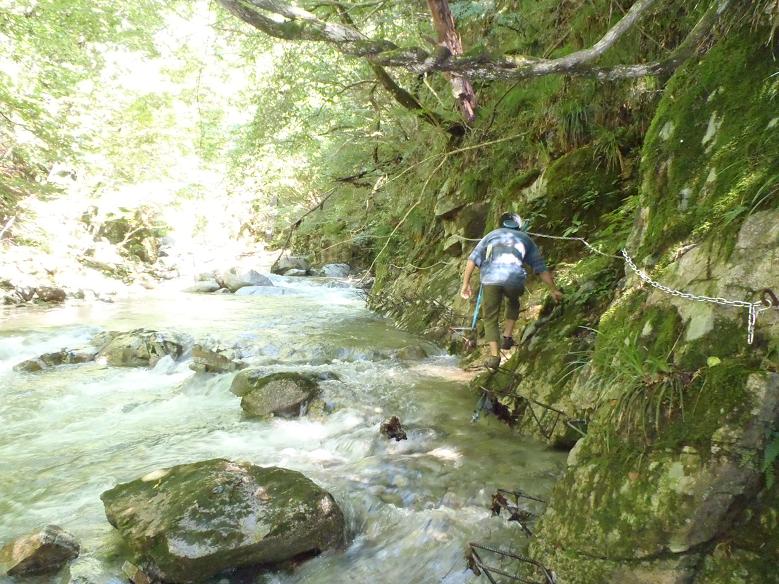 ここのところ、ずっと雨続きだったので、沢は増水している。