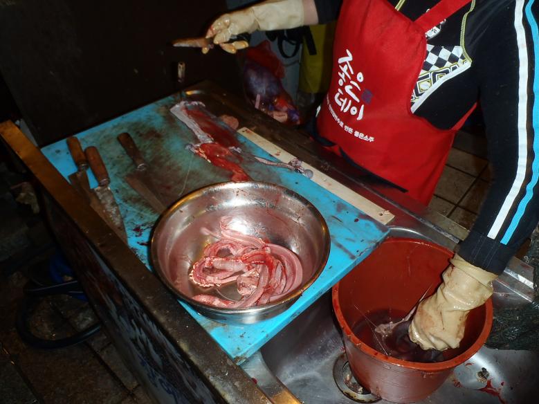 ぶつ切りになって鉄板の上にのっても、まだクネクネ動いてた。