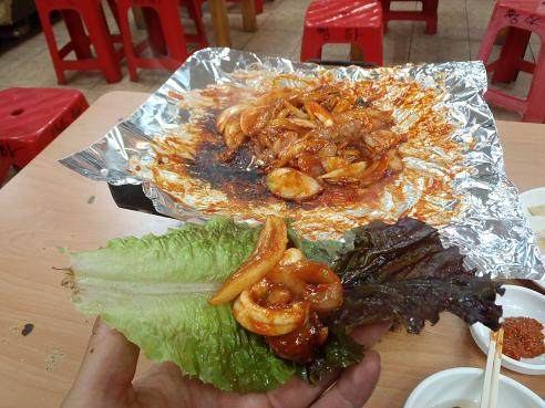 よく見ると、どの店でもみんな真っ赤で辛そうなものを、アルミホイルの上で焼いている。