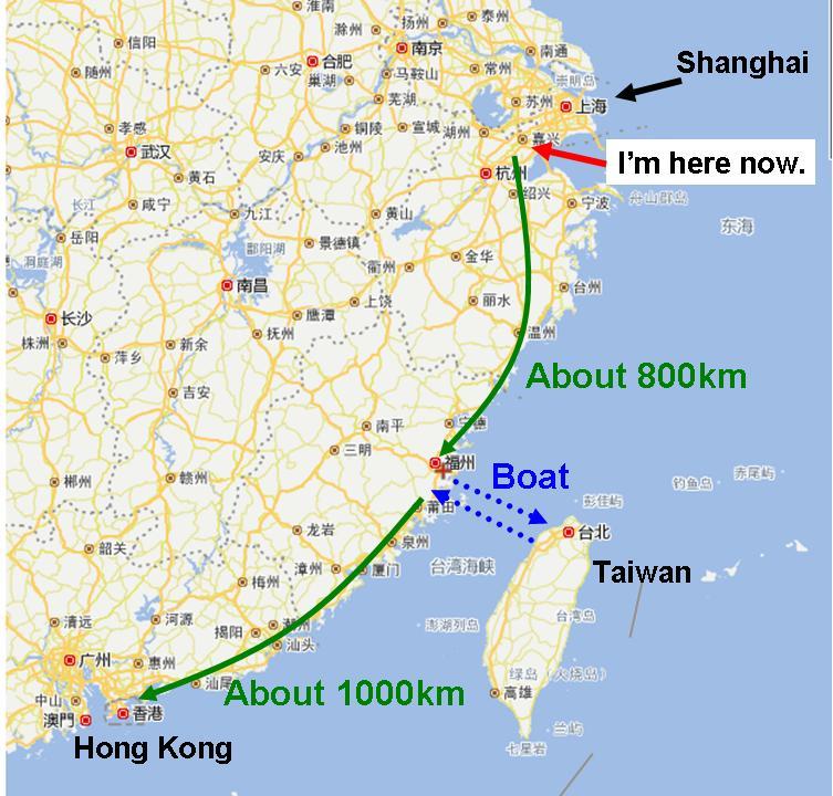 I rode through "Shandong province","Jiangsu province", "Shanghai city".