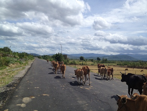 ベトナムでは、集落の中に牛がたくさんいて、