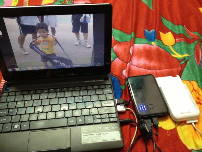 【電池パック×2とパソコンの電池で、4日間はもつけど】