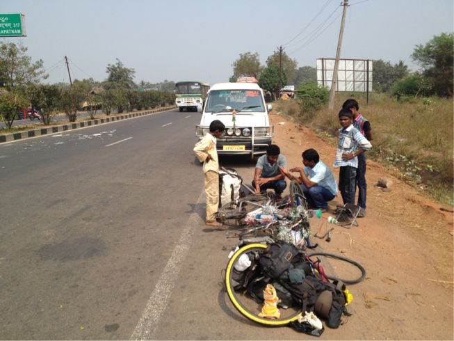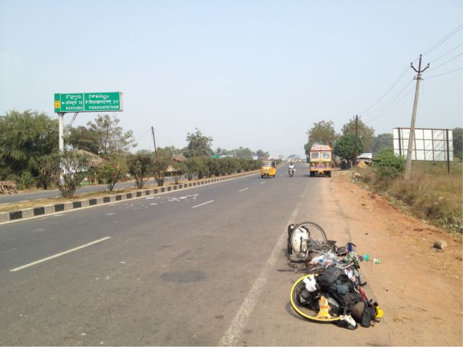 今日は、Vijayawadaという大きな都市まで120kmの道のりだけど、