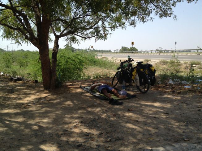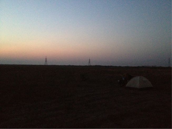 夕方に出発して30kmだけ走り、畑でキャンプ。