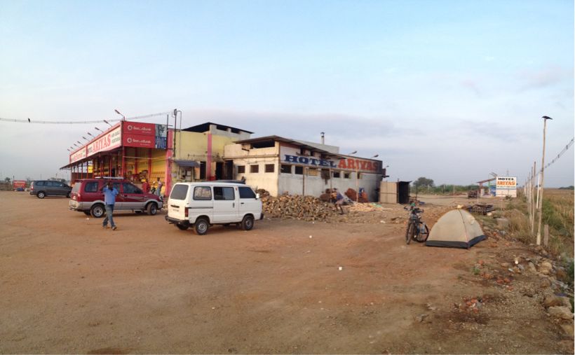 駐車場にテントを張らせてもらった。