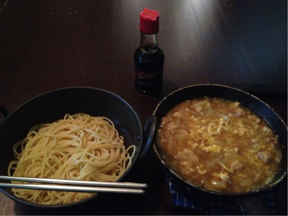 【つけ麺風、親子丼スパゲッティ】