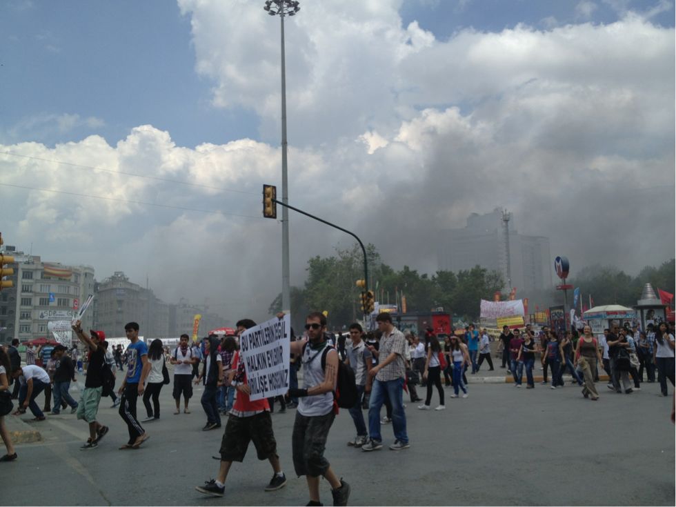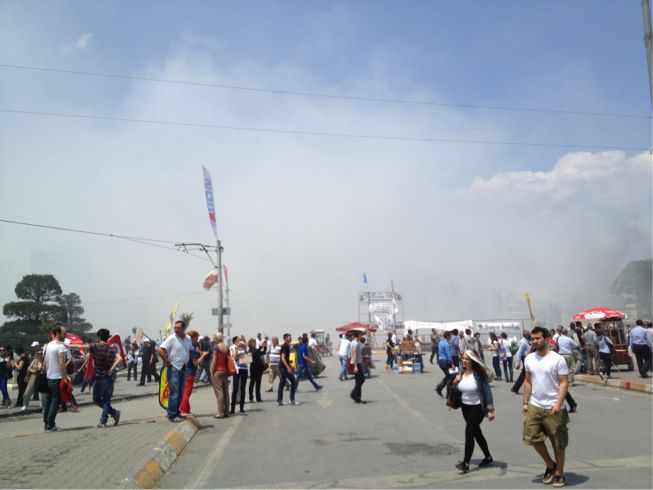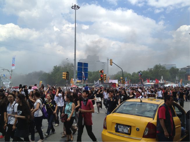 【まだたくさんの人達が、デモ行進を行っているタクシム広場】