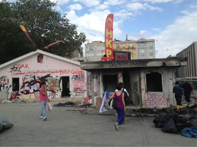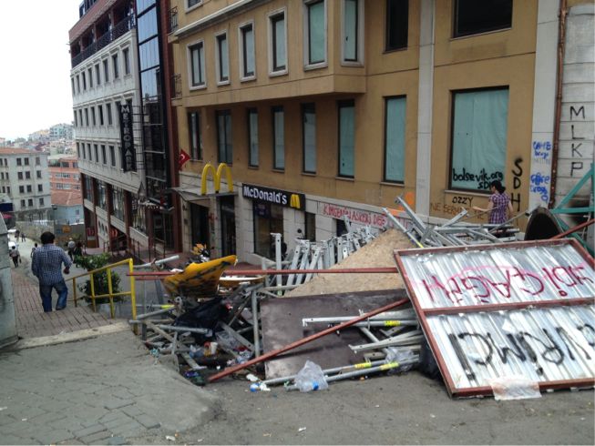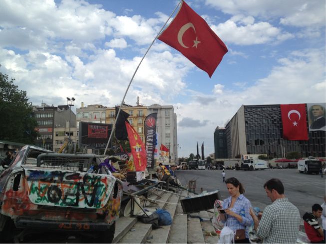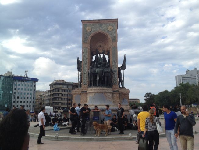 旗や落書きだらけになっていたタクシム広場にあるモニュメントは、
