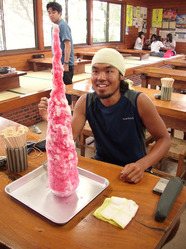 普通のかき氷の高さを、毎年1cmずつくらいのペースで高くしていったらしいよ。