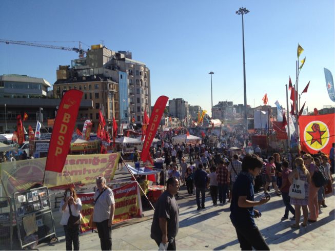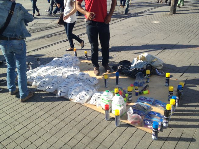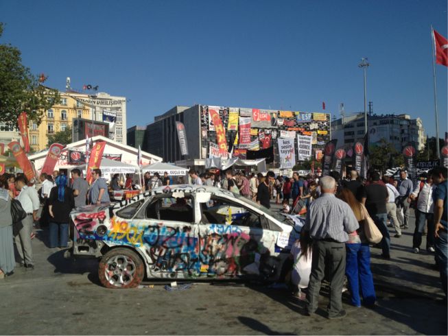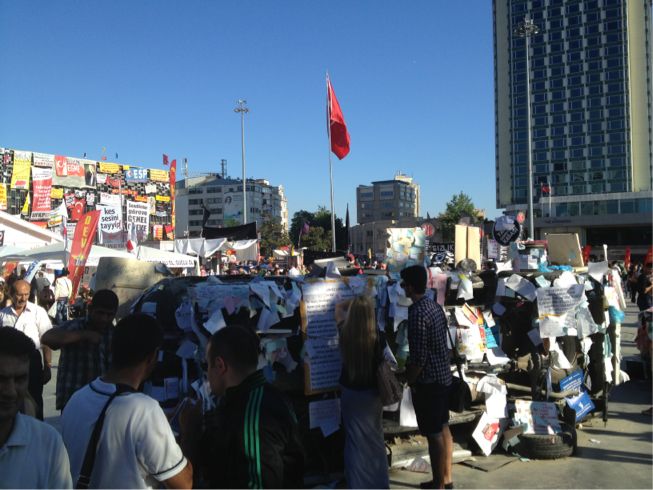 【広場とその周辺は、エルドアン政権を批判する張り紙と落書きだらけ】