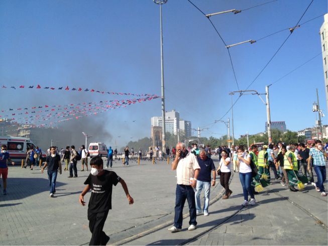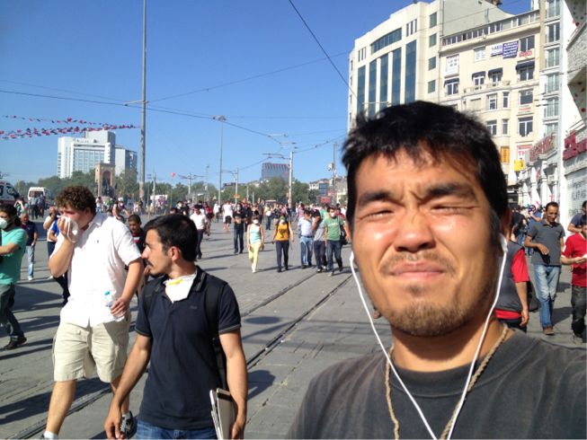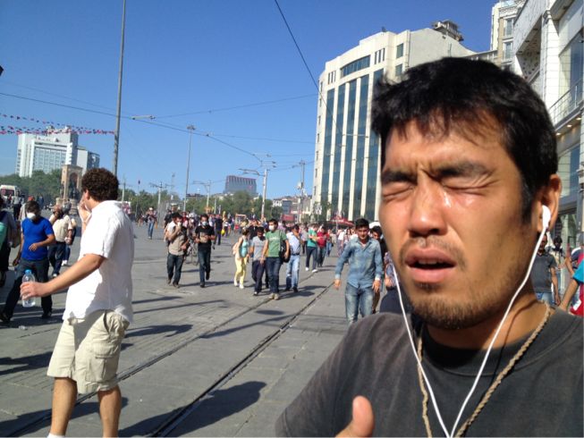 タクシム広場周辺で、デモ隊vs警官隊の衝突に出くわしてしまった。